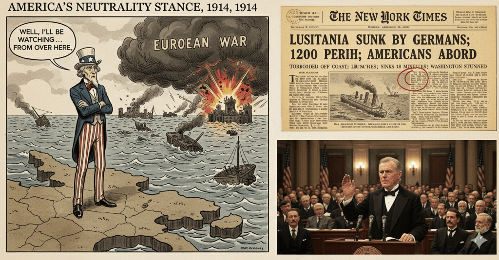 When war broke out in August 1914, President Woodrow Wilson—a scholarly, slightly aloof idealist—issued an immediate declaration of neutrality. He urged Americans to be “impartial in thought as well as in action.”